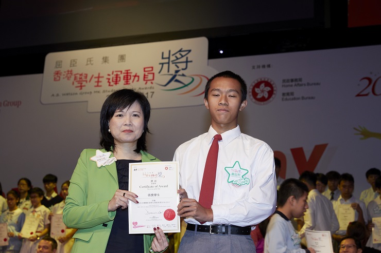 中四嚴鉦熙同學榮獲本年度屈臣氏集團香港學生運動員獎,家長亦陪同出席頒獎典禮,